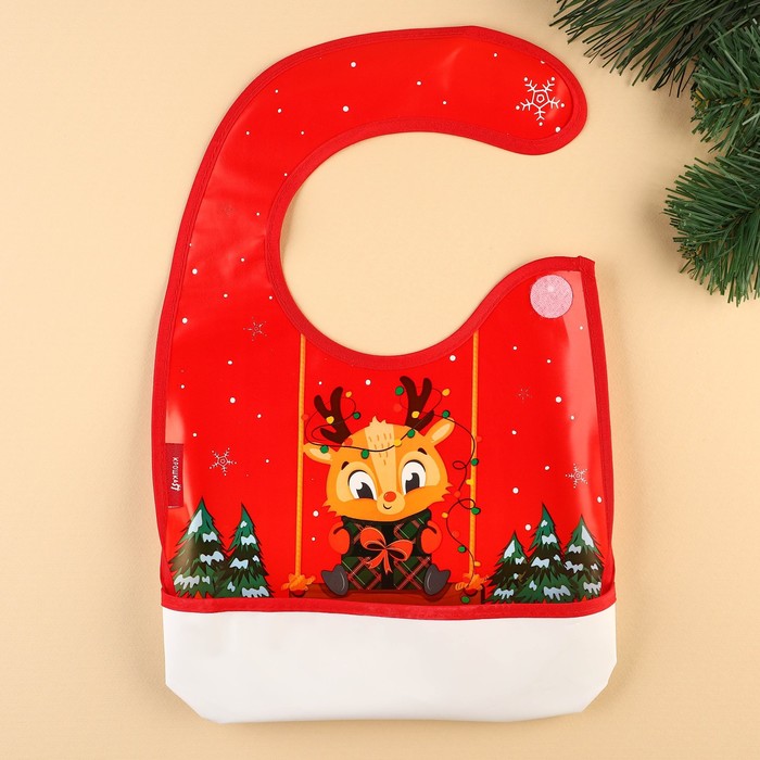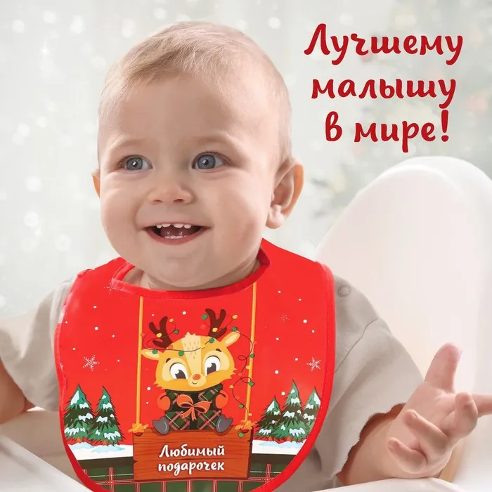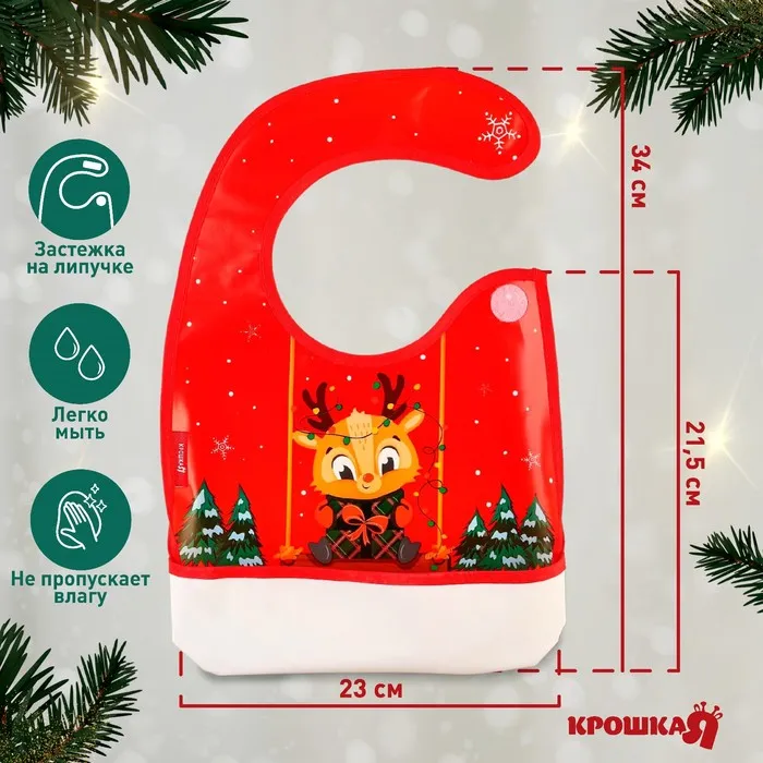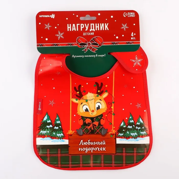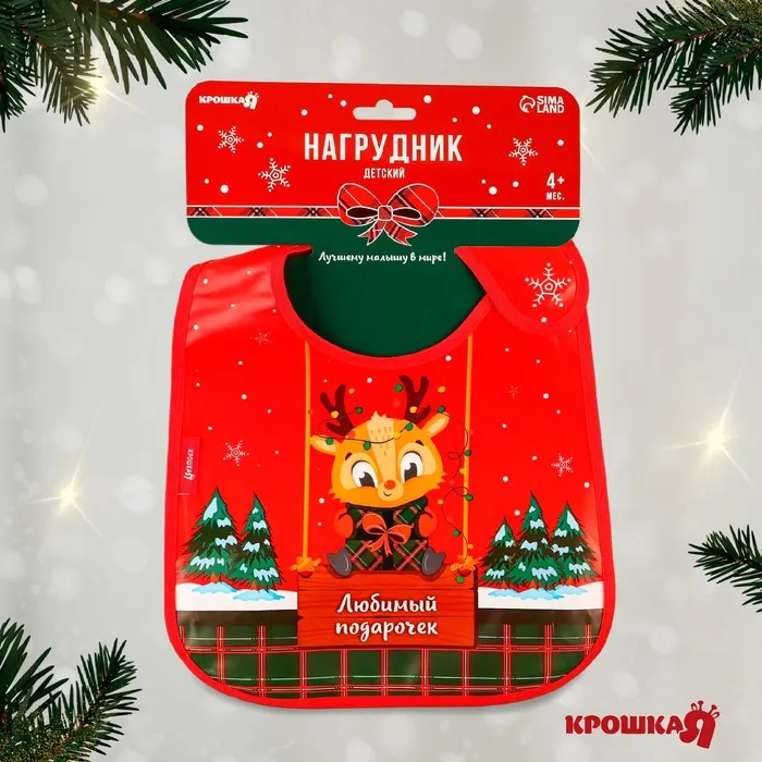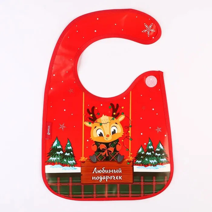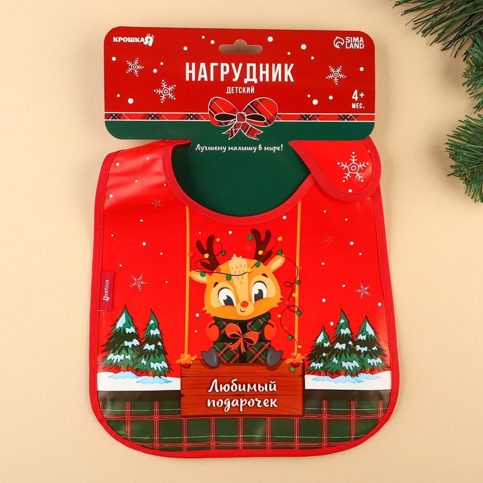 Нагрудник для кормления новогодний «Любимый подарочек, красная клетка», непромокаемый на липучке, с карманом, Крошка Я — Характеристики