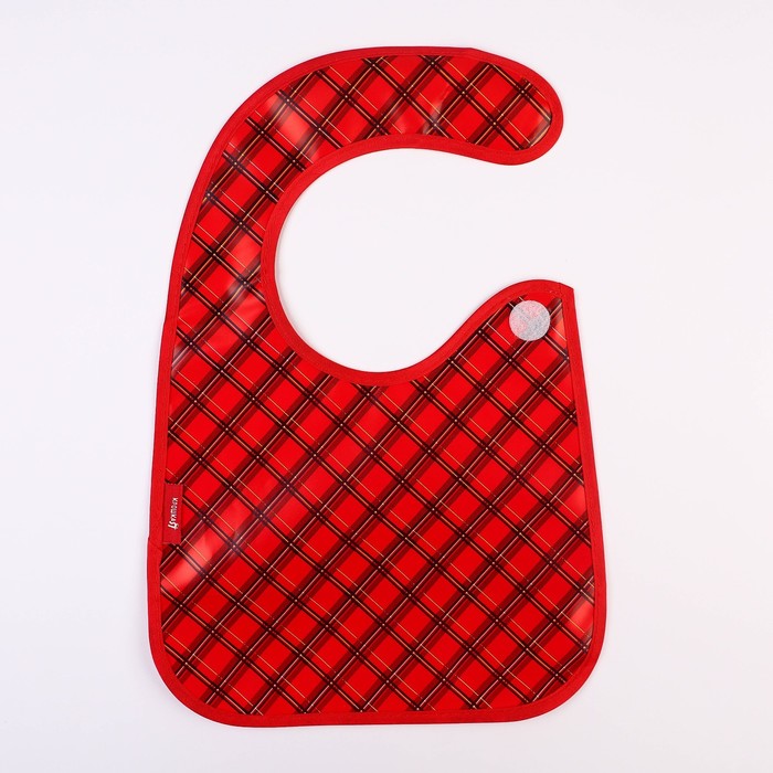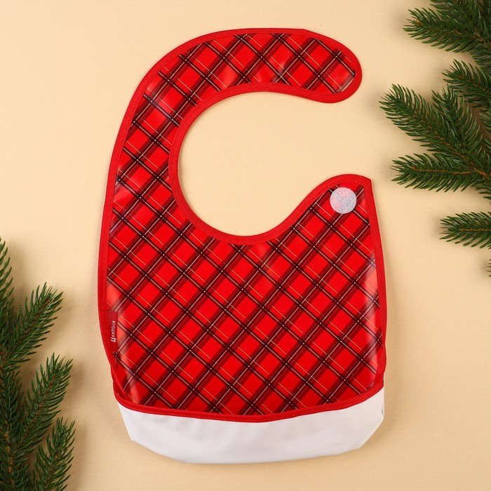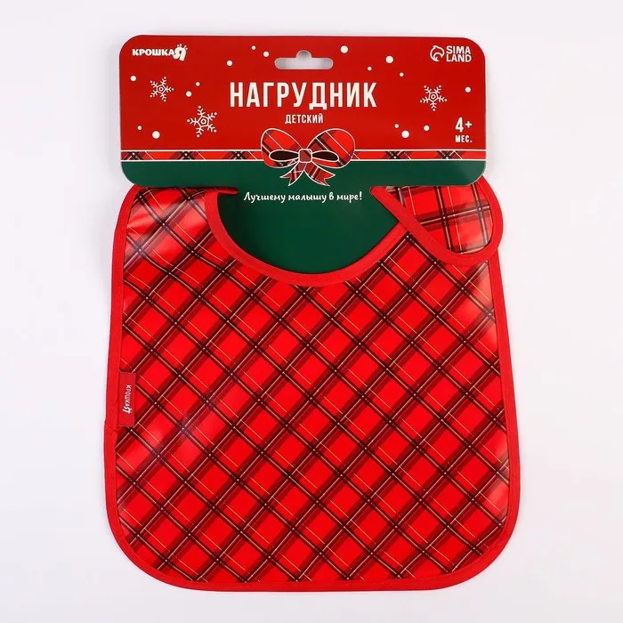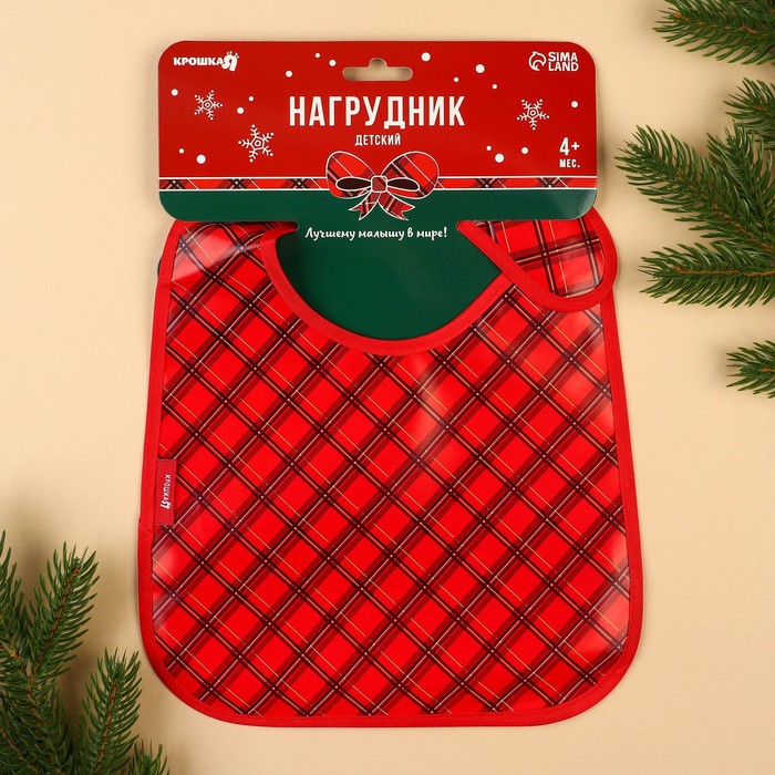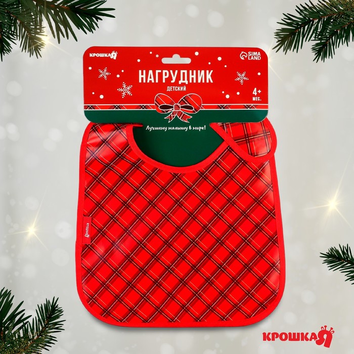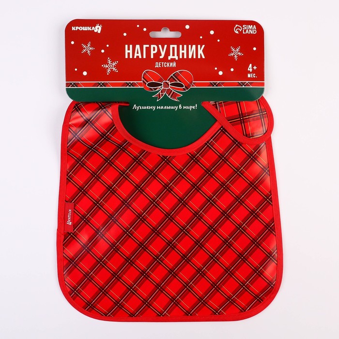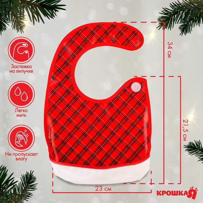 Нагрудник для кормления новогодний «Лучшему малышу, красная клетка», непромокаемый на липучке, с карманом, Крошка Я — Характеристики