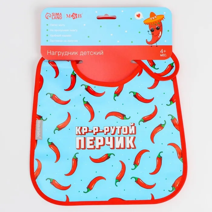 Нагрудник для кормления «Перчик» непромокаемый на липучке, с карманом — Характеристики