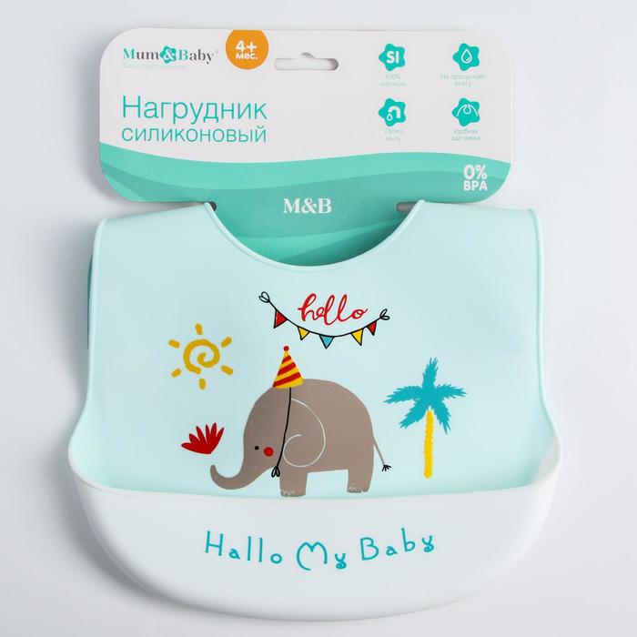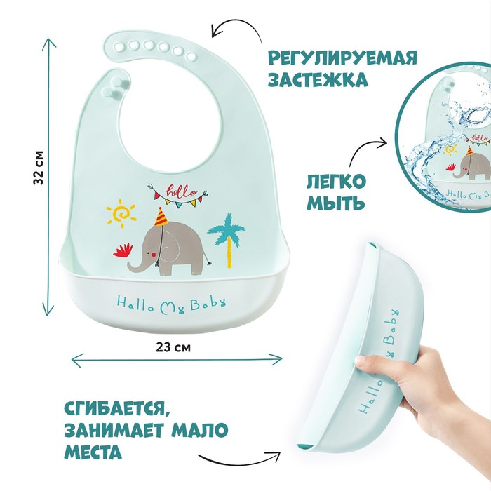 Нагрудник для кормления «Слон» силиконовый с карманом, цвет мятный/белый — Характеристики