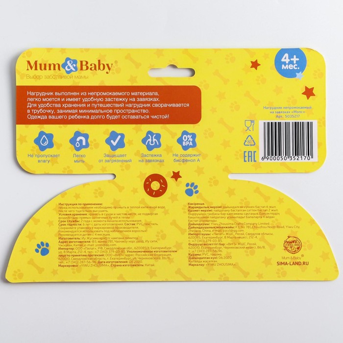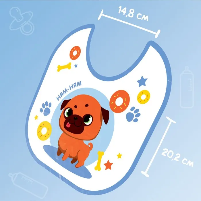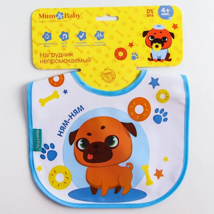 Нагрудник для кормления «ТРЕНД. Мопс» непромокаемый на завязках — Характеристики