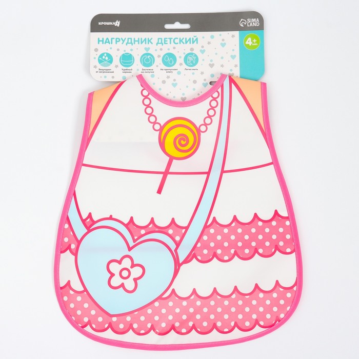 Нагрудник Крошка Я с карманом для девочки, непромокаемый, на липучке, МИКС — Характеристики