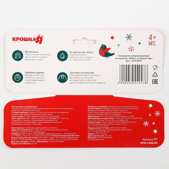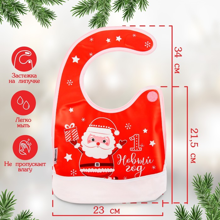 Нагрудник «Мой 1 Новый Год» непромокаемый на липучке, ПВХ, Крошка Я — Характеристики