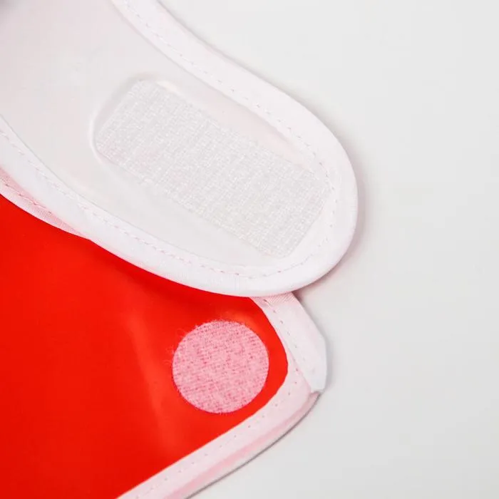 Изделие выполнено из мягкого материала, имеет безопасные края. Приспособление фиксируется за шеей с помощью застёжки.
