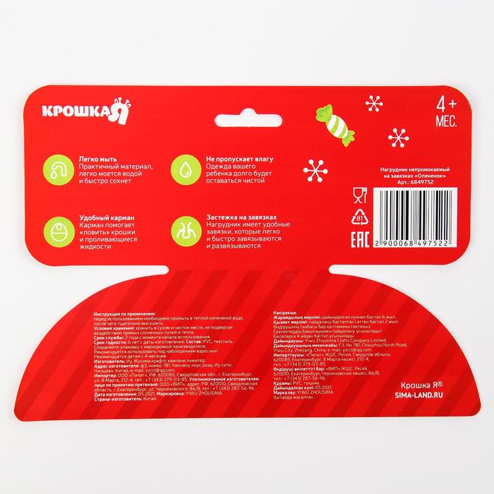 Нагрудник «Олененок» непромокаемый на завязках, ПВХ, Крошка Я — Характеристики