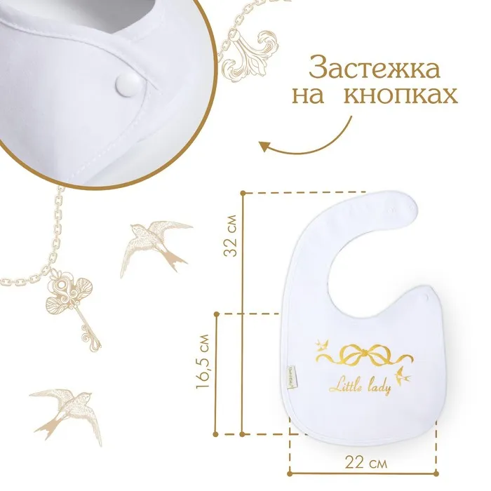 Нагрудник/слюнявчик для кормления «Little lady» на кнопке — Характеристики