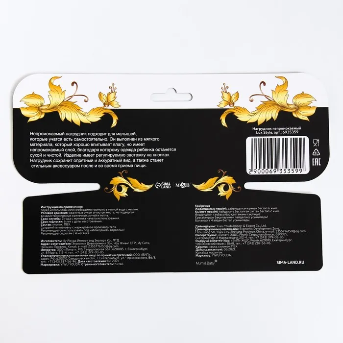 Нагрудник/слюнявчик для кормления M&B «Lux Style» на кнопке — Характеристики