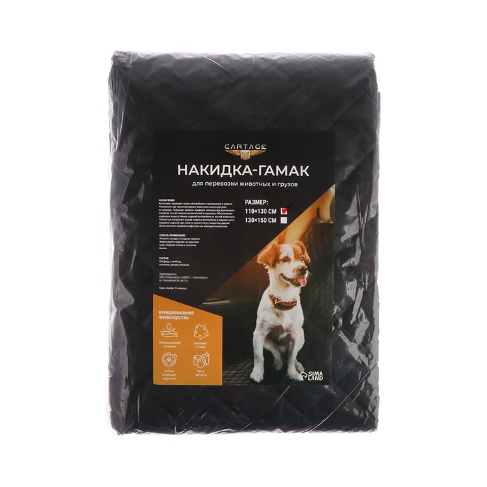 Накидка-автогамак для перевозки животных и грузов Cartage, оксфорд, черный, 110×130 см — Характеристики