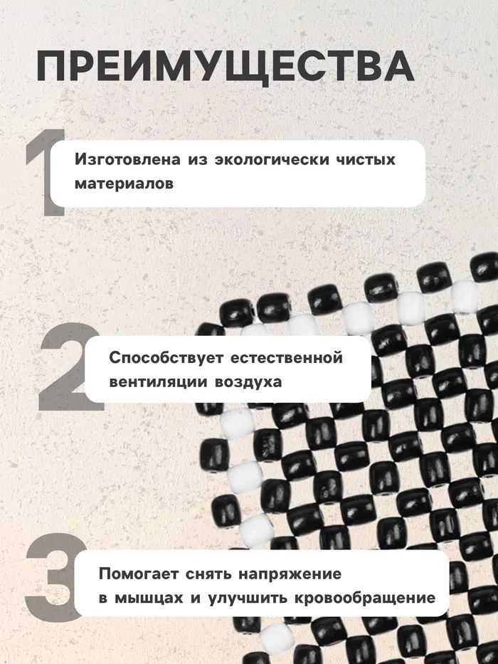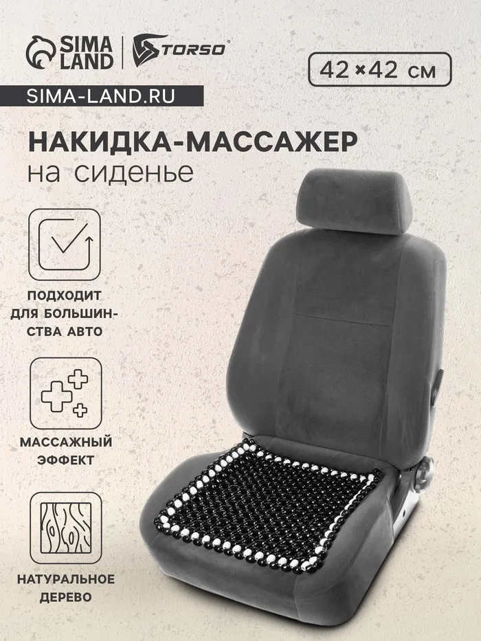 Накидка массажер TORSO на сиденье 42х42 см, дерево, черный с белым — Характеристики
