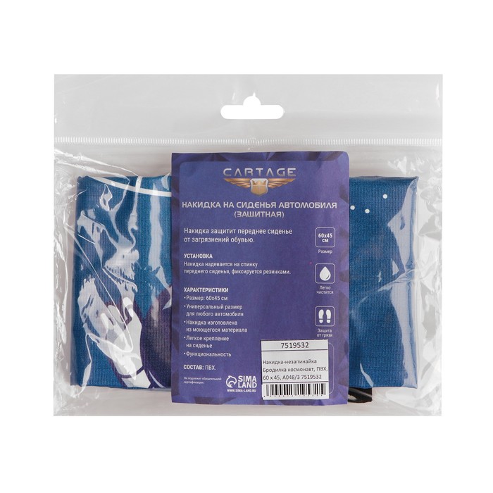 Накидка на сиденье автомобильное Cartage Бродилка космонавт, ПВХ, 60×45 см — Характеристики