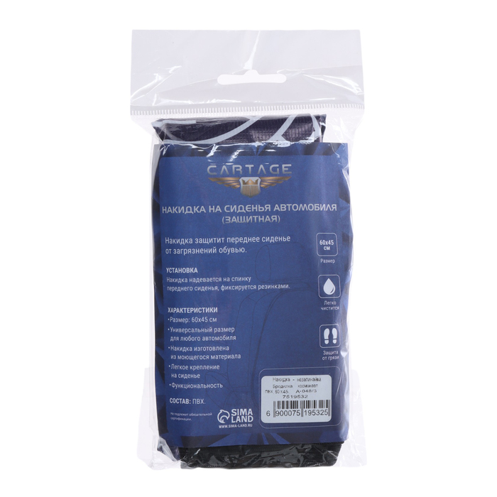 Накидки на сиденья автомобиля от бренда Cartage - это стильная и надежная защита кресел салона от загрязнения, царапин, истирания. Данная модель-незапинайка предназначена в первую очередь для защиты спинки переднего сиденья от обуви ребенка и от лап животных. Защитные накидки универсальны, подходят для любых марок автомобилей. Размер накидки 60 х 45 см. Благодаря яркому дизайну с качественной печатью, накидка украсит салон автомобиля и превратит поездку ребёнка в увлекательное путешествие. На выбор - различные варианты расцветок. Накидка-незапинайка Cartage выполнена из прочного материала, который не впитывает влагу и загрязнения, стойкий к истиранию, механическим повреждениям и царапинам. Легко очищается без специальных средств и не требует стирки.