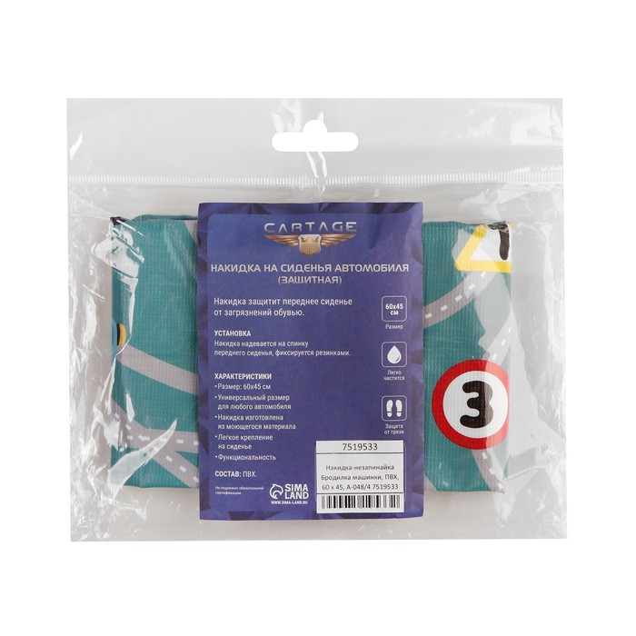 Накидка на сиденье автомобильное Cartage Бродилка машинки, ПВХ, 60×45 см, европодвес — Характеристики