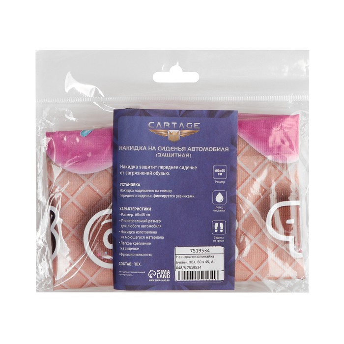 Накидка на сиденье автомобильное Cartage Буквы, ПВХ, 60×45 см, европодвес — Характеристики