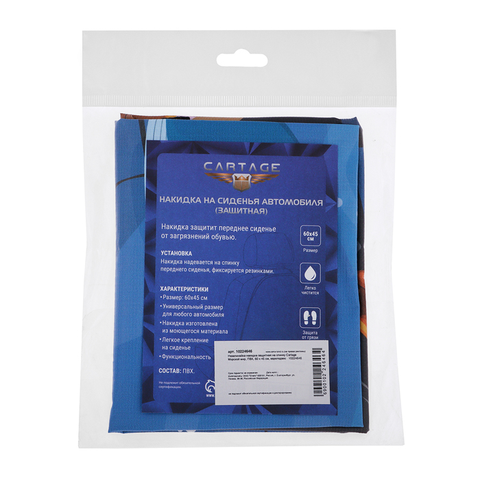Незапинайка-накидка защитная “Морской мир” от Cartage изготовлена из ПВХ и предназначена для защиты спинки переднего сиденья и двери автомобиля от грязи, пыли и механических повреждений. Она легко крепится с помощью липучек и не мешает обзору водителя. Накидка имеет размеры 60х45 см и представлена в ярком цвете, который добавит изюминку в интерьер вашего автомобиля. С помощью европодвеса вы сможете удобно и аккуратно хранить накидку в багажнике автомобиля.