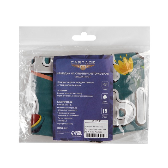 Накидка на сиденье автомобильное Cartage Веселые буквы, ПВХ, 60×45 см, европодвес — Характеристики