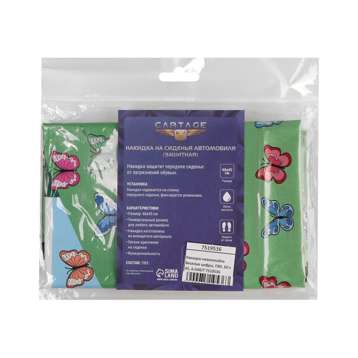 Накидка на сиденье автомобильное Cartage Веселые цифры, ПВХ, 60×45 см, европодвес — Характеристики