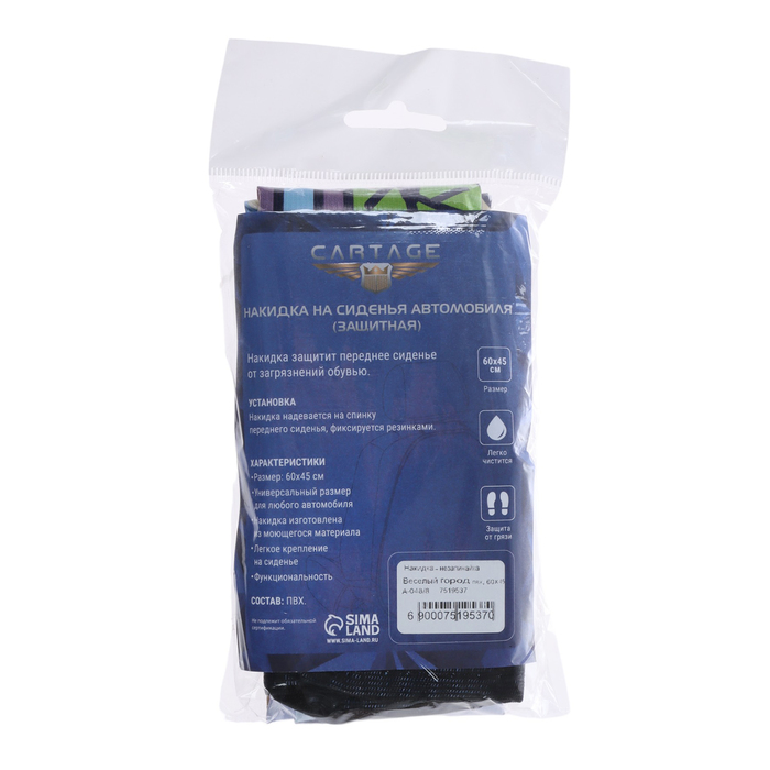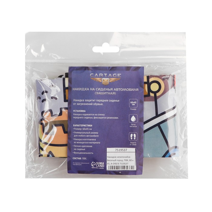 Накидка на сиденье автомобильное cartage Веселый город, ПВХ, 60×45 см, европодвес — Характеристики