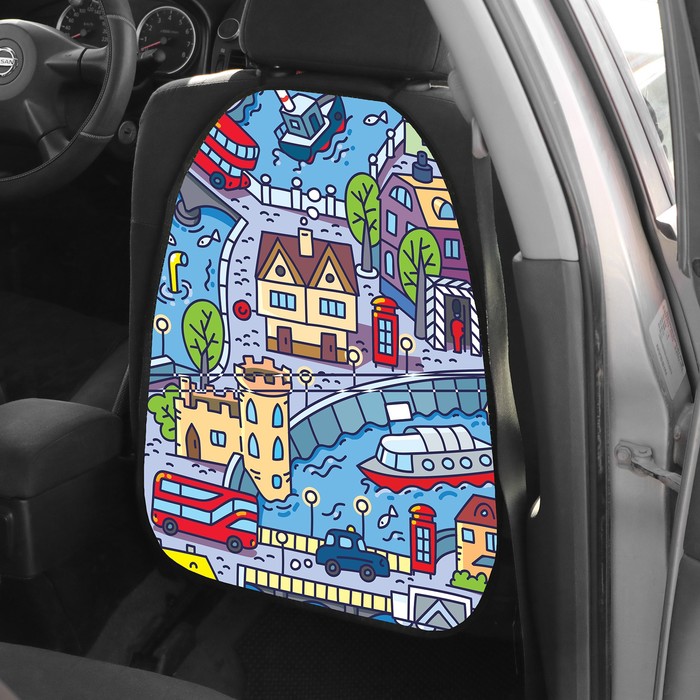 Накидка на сиденье автомобильное cartage Веселый город, ПВХ, 60×45 см, европодвес