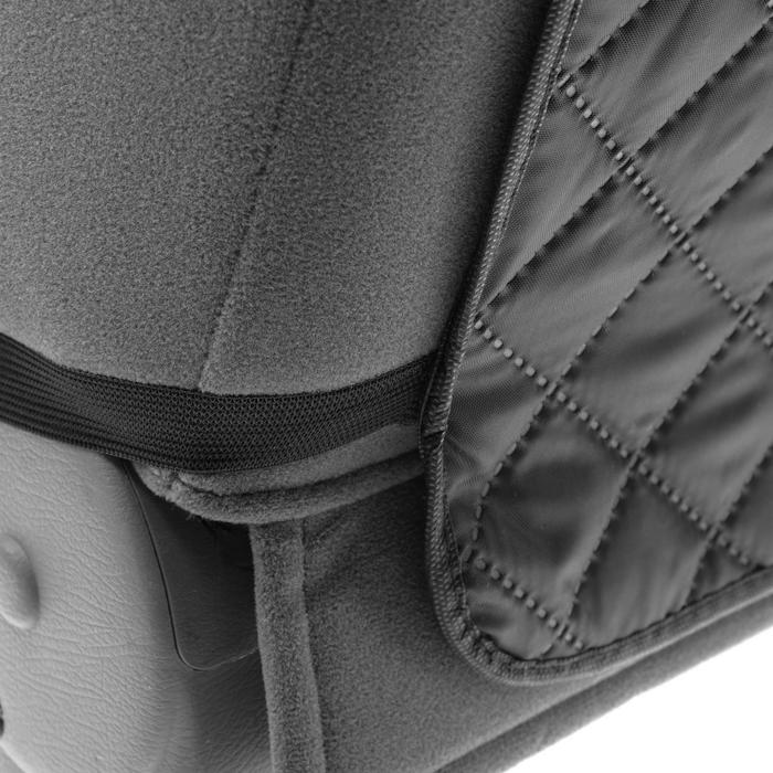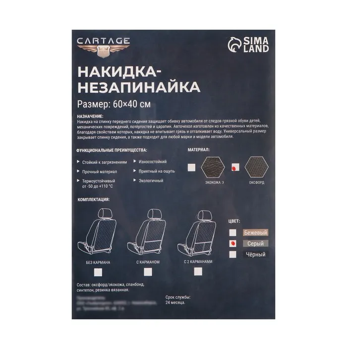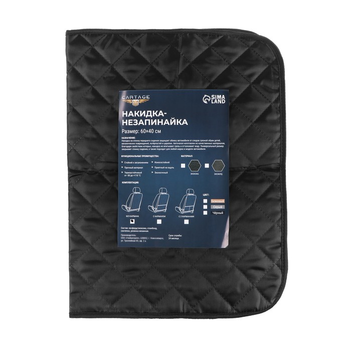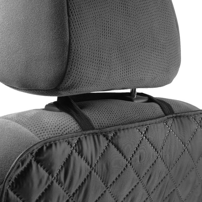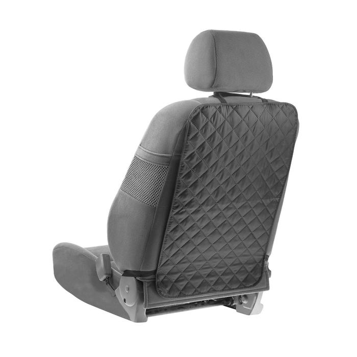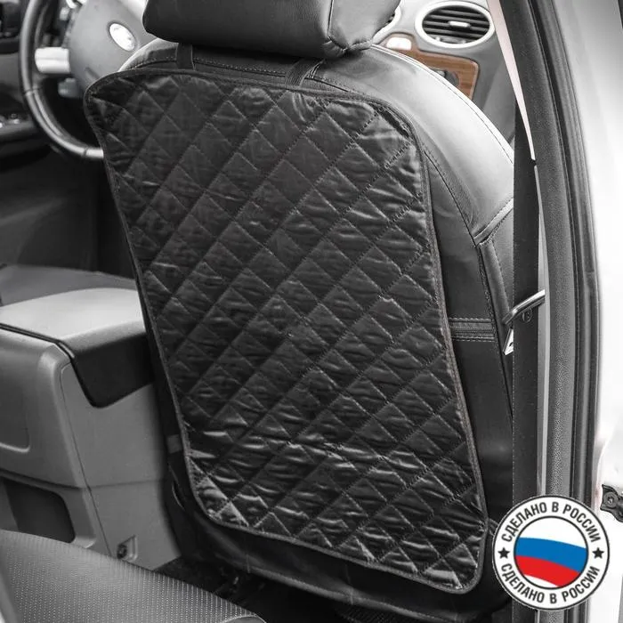 Накидка - незапинайка - это незаменимая вещь для автомобиля, чтобы спинки ваших сидений сохранялись в чистоте. Больше не нужно беспокоиться, что ваш ребенок запачкает их ножками, а строгий классический стиль будет идеально гармонировать с салоном авто. Ткань легко чистится влажной тряпкой или салфеткой. Крепится резинками, размер накидки 60 см * 40 см.
