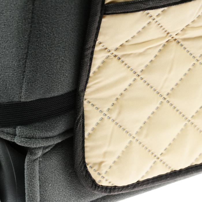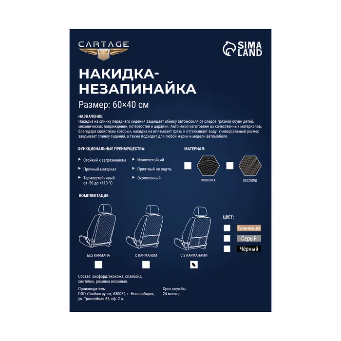 Накидка-незапинайка Cartage – это практичное и стильное решение для защиты спинки сиденья автомобиля от грязи, пыли и повреждений. Выполненная из высококачественного материала оксфорд, накидка обладает прочностью и износостойкостью, обеспечивая длительный срок службы. Размеры накидки составляют 40 см в ширину и 60 см в длину, что позволяет легко и быстро закрепить ее на спинке сиденья, не создавая помех при использовании ремней безопасности. Наличие кармана предоставляет дополнительное пространство для хранения мелких предметов или денег. Благодаря универсальному бежевому цвету накидка подходит для любого типа автомобиля и легко вписывается в интерьер салона.