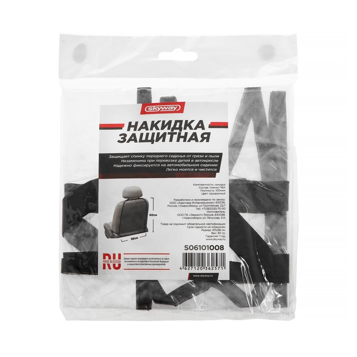 Накидка- незапинайка Skyway, на спинку сиденья, ПВХ, прозрачная — Характеристики