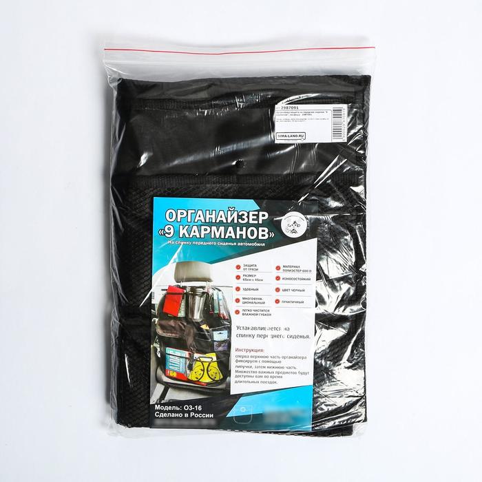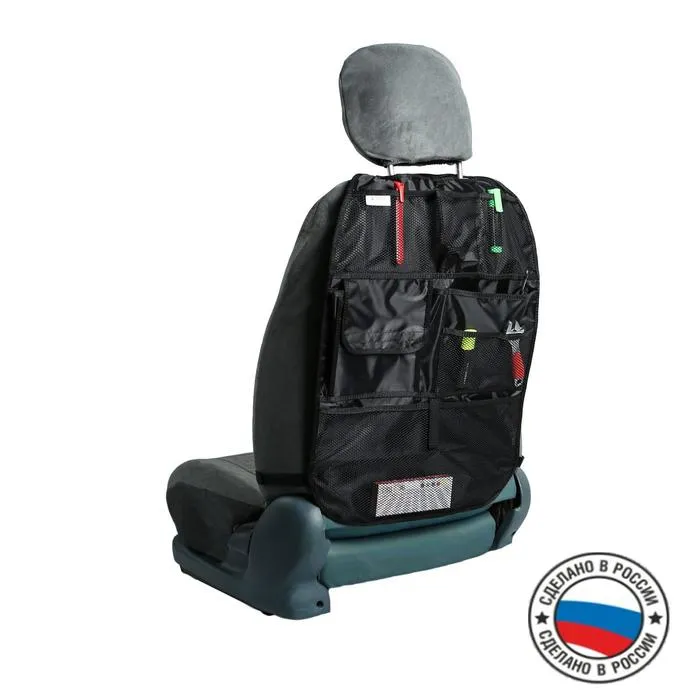 Удобная и функциональная накидка-органайзер "9 карманов" на спинку сиденья – настоящая находка для людей ценящих порядок в салоне автомобиля, и, в частности, для родителей, часто путешествующих с детьми в автомобиле. Такой аксессуар поможет аккуратно и компактно разместить большое количество детских вещей и принадлежностей в салоне автомобиля, а также обеспечит легкий и быстрый доступ к ним. Кроме этого, он защитит оригинальную обивку передних сидений от загрязнений и повреждений, образующихся при перевозке детей в автокресле. В производстве данного изделия используется прочная и износостойкая ткань, обладающая грязе- и водоотталкивающими свойствами.