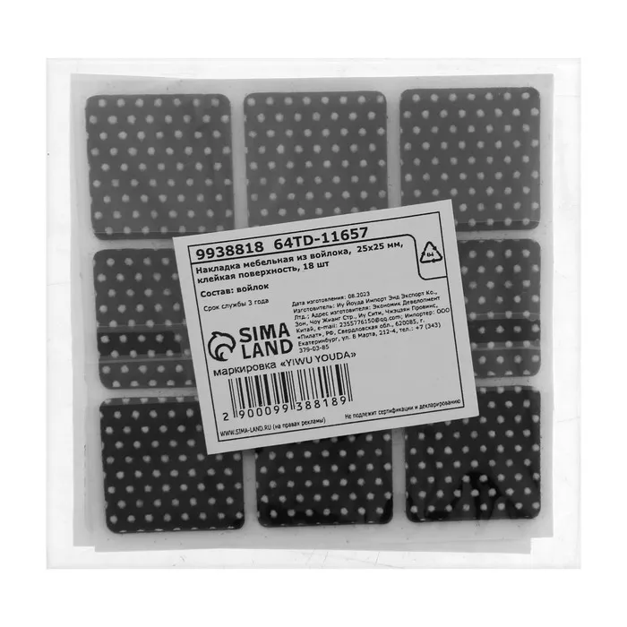 Накладка мебельная из войлока, 25×25 мм, клейкая поверхность, 18 шт. — Характеристики