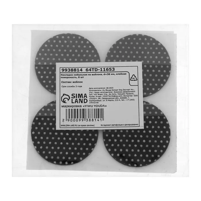 Накладка мебельная из войлока, d=38 мм, клейкая поверхность, 8 шт. — Характеристики