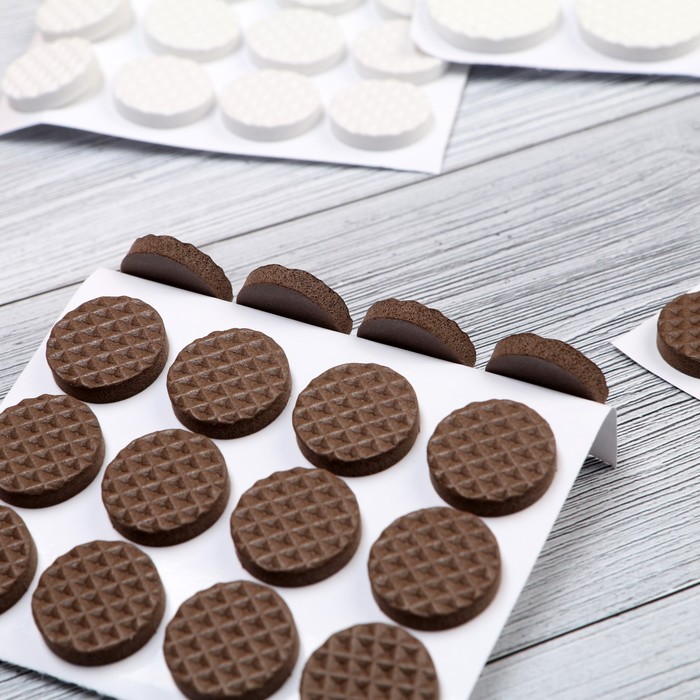 Защита без сложного монтажа: Накладки предотвращают появление царапин на паркете, ламинате и плитке. Тридцать две штуки в наборе рассчитаны на комплект мебели — например, восемь стульев или несколько предметов обстановки. Упругая прослойка снижает шум при перемещении мебели по твердому покрытию.