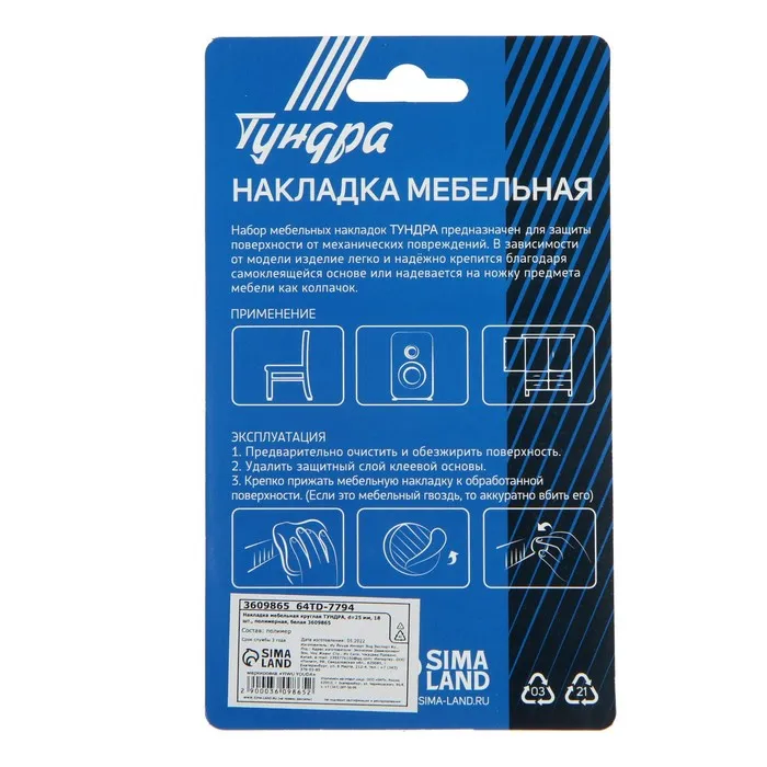 Накладка мебельная круглая ТУНДРА обеспечивает защиту покрытий полов от механических повреждений.