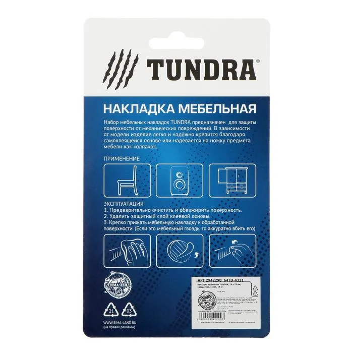 Накладка мебельная ТУНДРА, 25×25 мм, квадратная, серая, 18 шт. — Характеристики