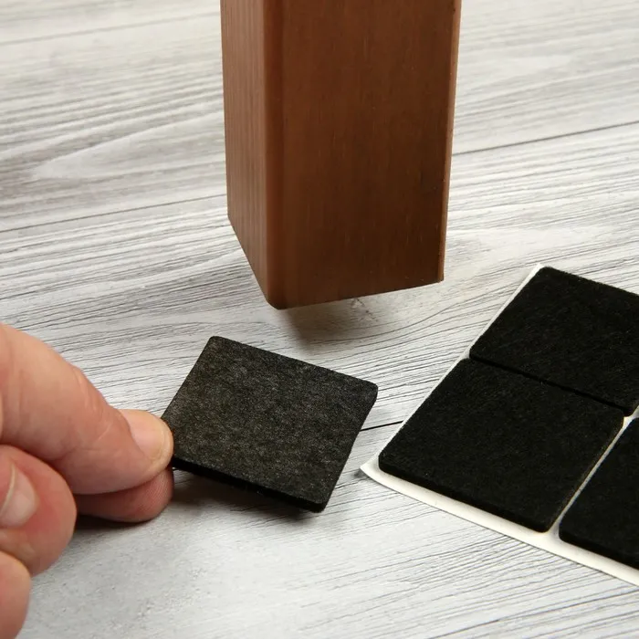 - Материал фетр: Плотный войлочный материал обеспечивает мягкое скольжение по полу. Он не царапает поверхность и поглощает звуки при движении мебели.