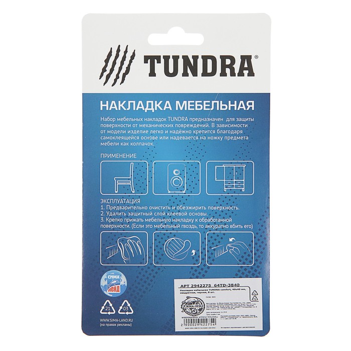 Бесшумное движение и полная защита пола! Набор самоклеящихся подкладок «Тундра» – это комплект фетровых накладок для мебели. Они предотвращают царапины на напольных покрытиях, уменьшают шум и облегчают перемещение предметов.