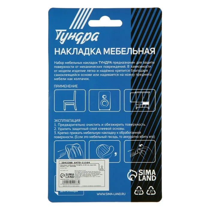 Накладка мебельная ТУНДРА, d=85 мм, круглая, белая, 2 шт. — Характеристики