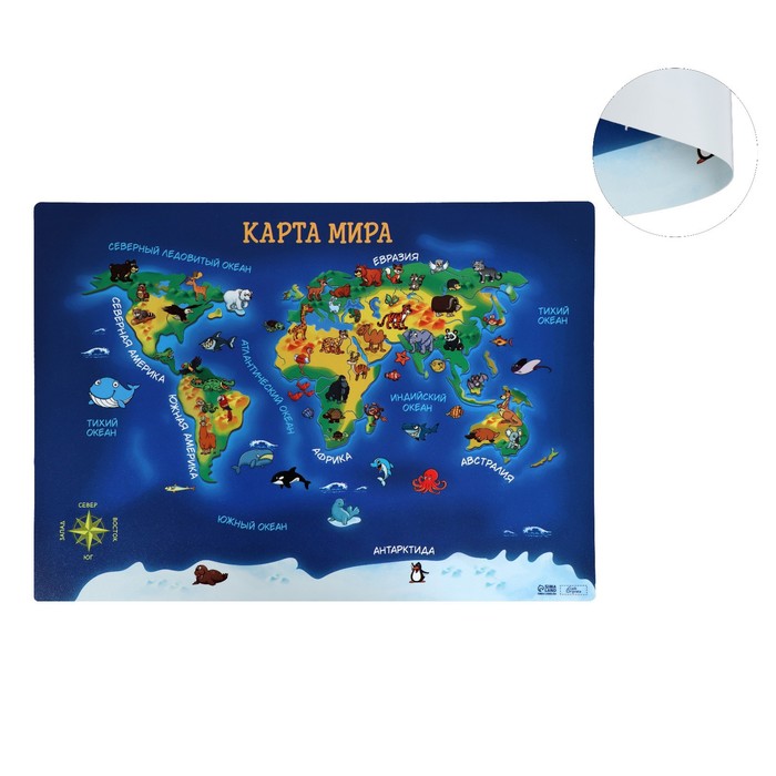 Накладка на стол пластиковая А3 (460 х 330 мм), Calligrata "Карта мира", 430 мкм, обучающая — Характеристики