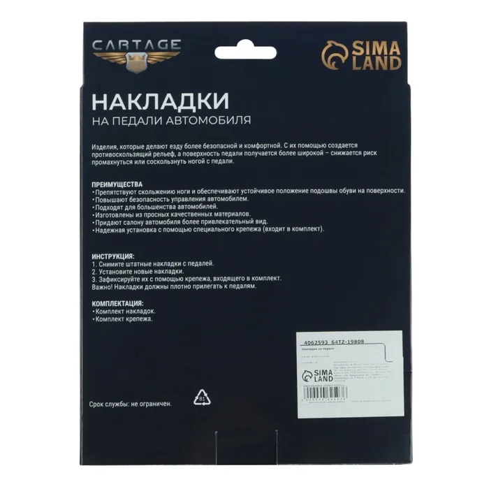Накладки на педали Cartage, антискользящие, хром, набор 3 шт. — Характеристики