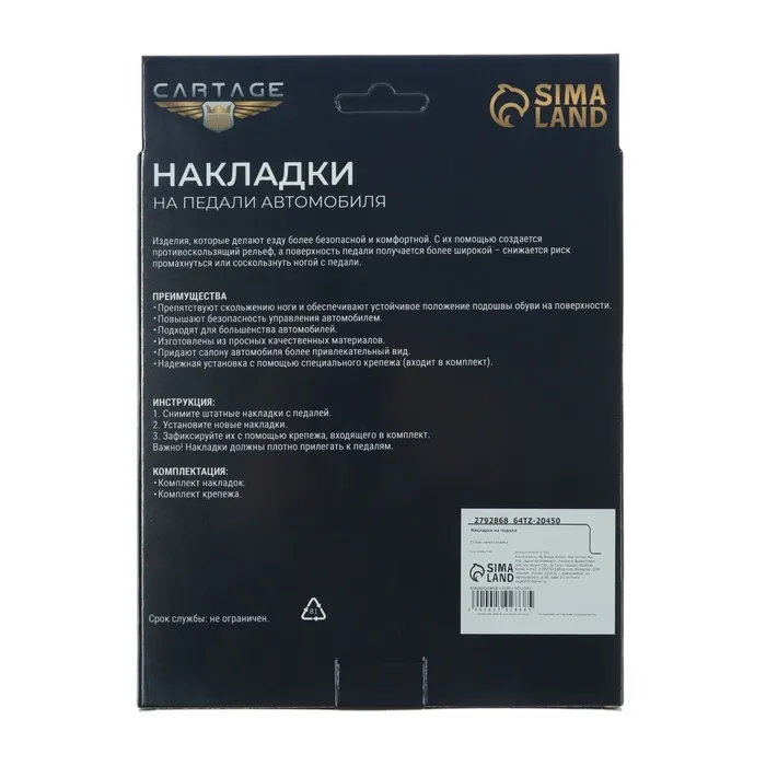 Накладки на педали Cartage, антискользящие, синий, набор 2 шт. — Характеристики