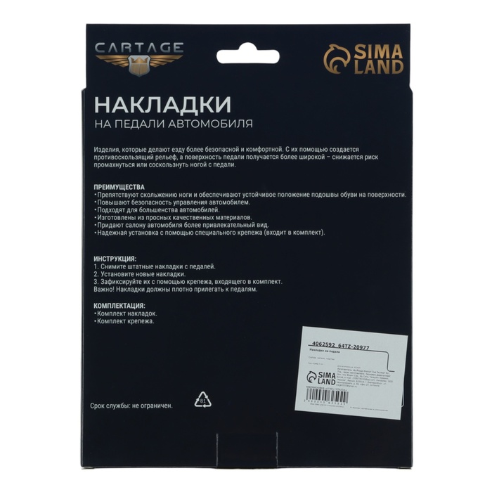 Накладки на педали Cartage, антискользящие, синий, набор 3 шт. — Характеристики