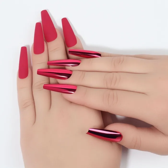 Накладные ногти, 12 шт., с клеевыми пластинами, форма балерина, матовые/хромированные, бордовые, красные