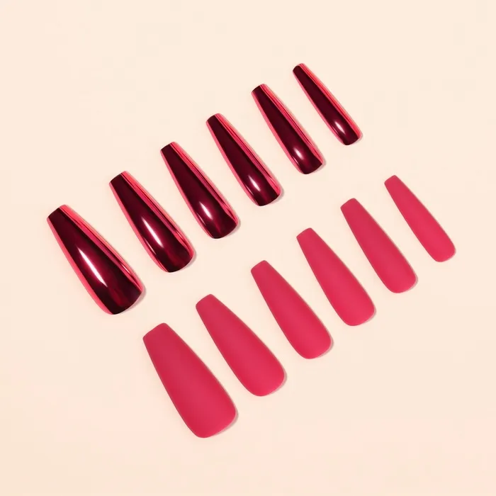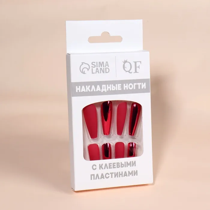 Накладные ногти, 12 шт., с клеевыми пластинами, форма балерина, матовые/хромированные, бордовые, красные — Характеристики