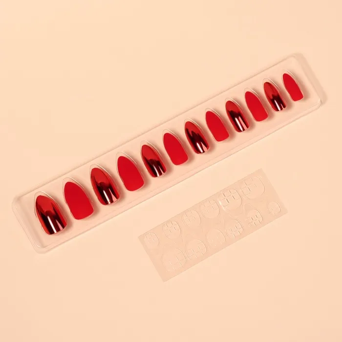 Накладные ногти, 12 шт., с клеевыми пластинами, форма миндаль, красные — Характеристики
