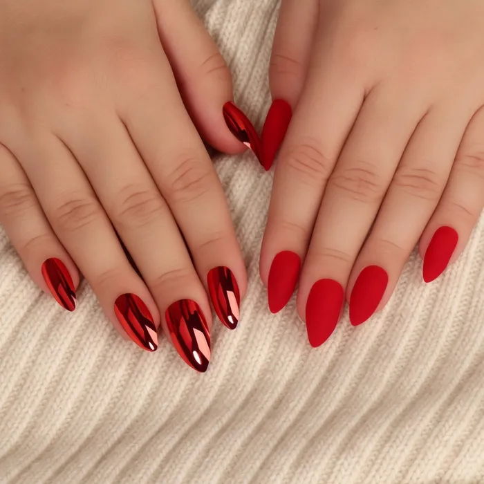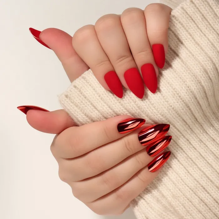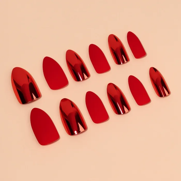 Накладные ногти, 12 шт., с клеевыми пластинами, форма миндаль, красные