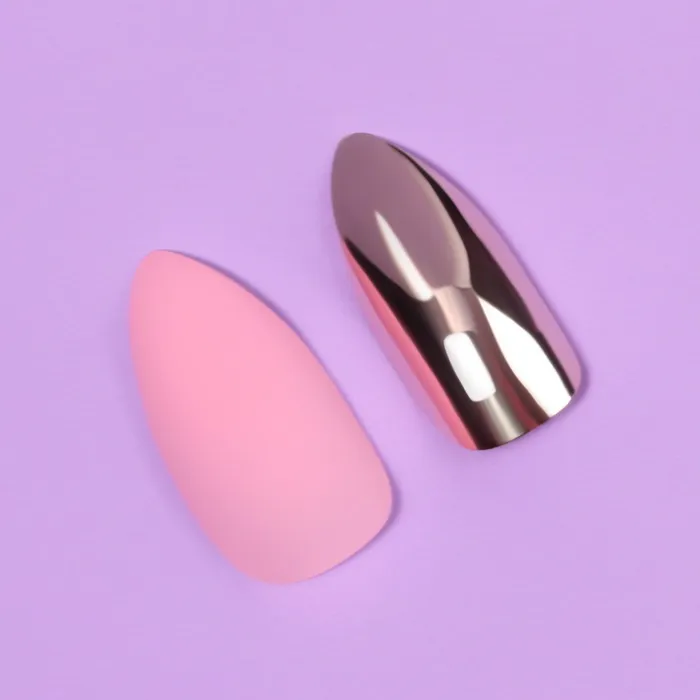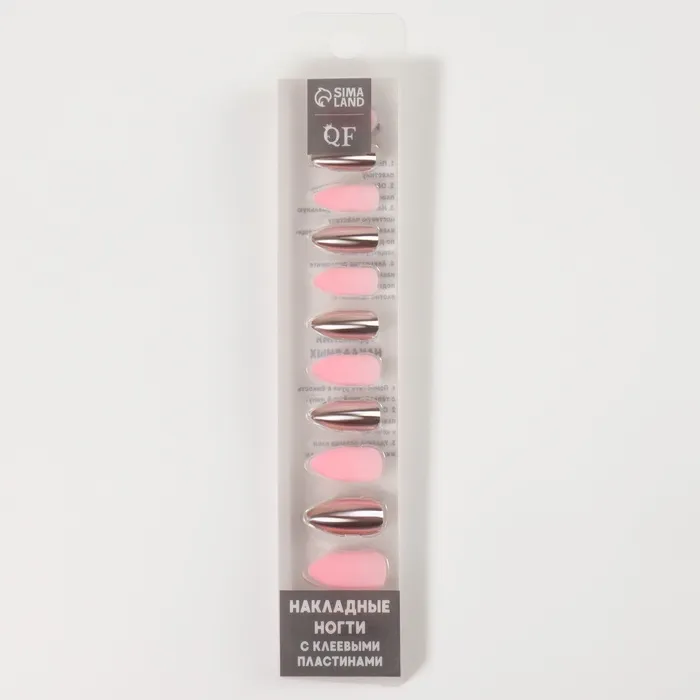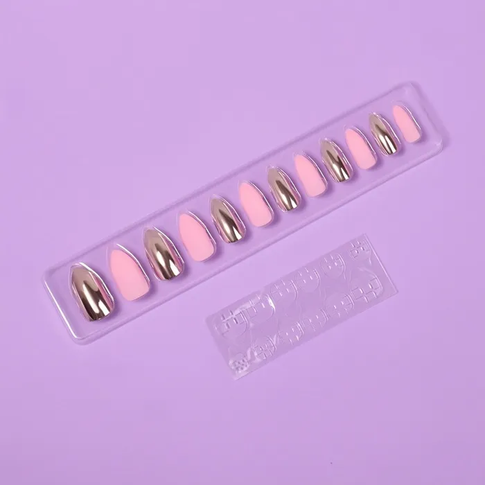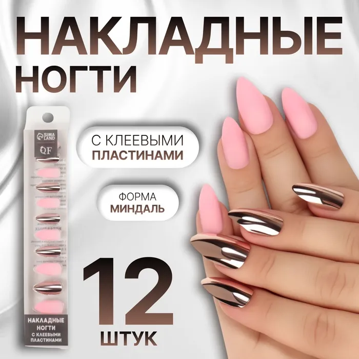 Накладные ногти, 12 шт, с клеевыми пластинами, форма миндаль, матовые/хромированные, розовые, золотистые — Характеристики