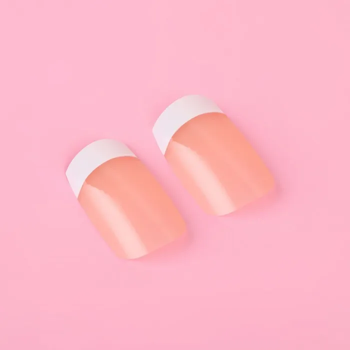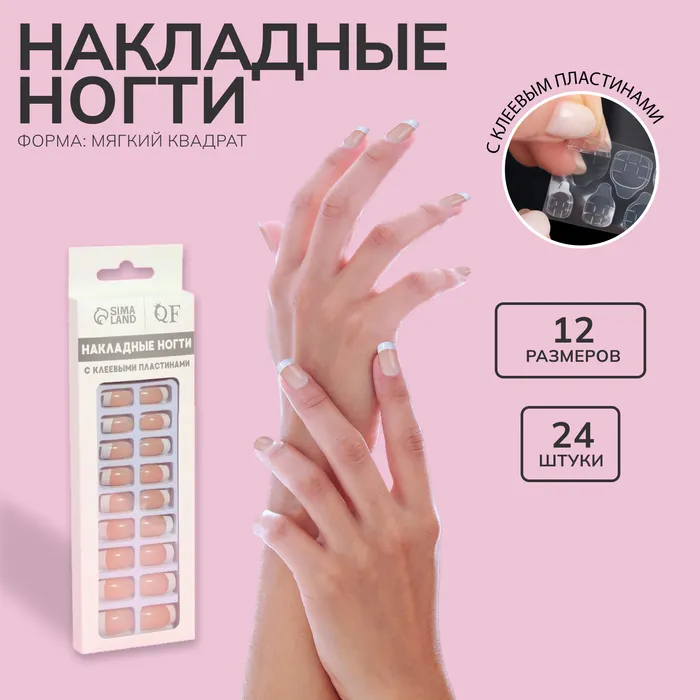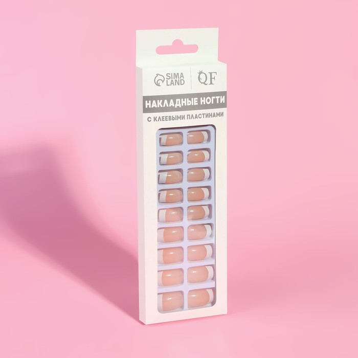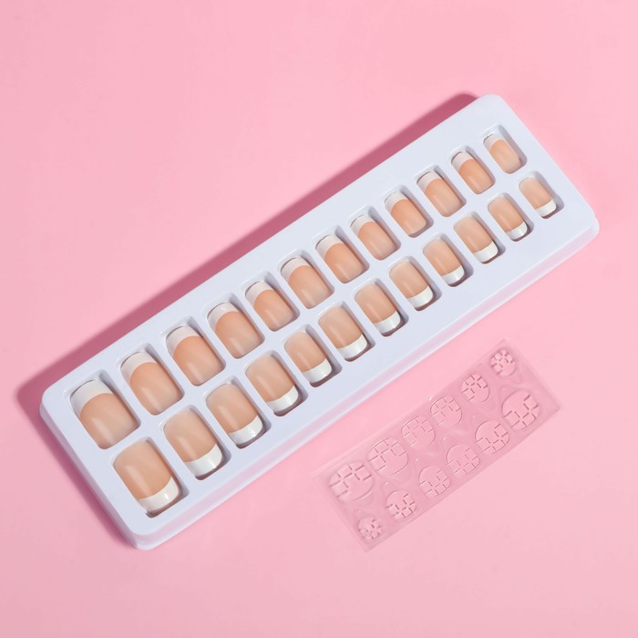 Накладные ногти, 24 шт, с клеевыми пластинами, форма мягкий квадрат, цвет бежевый/белый — Характеристики