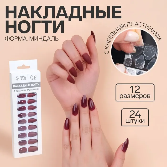 В наборе с накладными ногтями идут клеевые пластины. За счёт этого уменьшается вероятность механического травмирования природного ногтя. Клеевые пластины безопасны в применении и не вредят натуральным ногтям, в отличие от клея. Клей содержит составе высокую токсичность, что может сказаться на вашем организме.