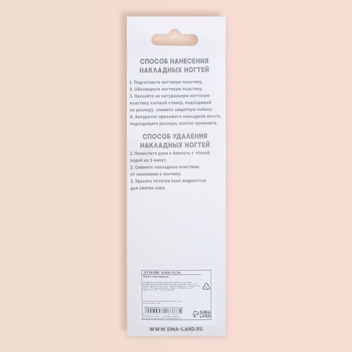 Максимальный срок носки накладных ногтей – 14 дней. Не рекомендуем перенашивать. При бережном ношении могут использоваться несколько раз.