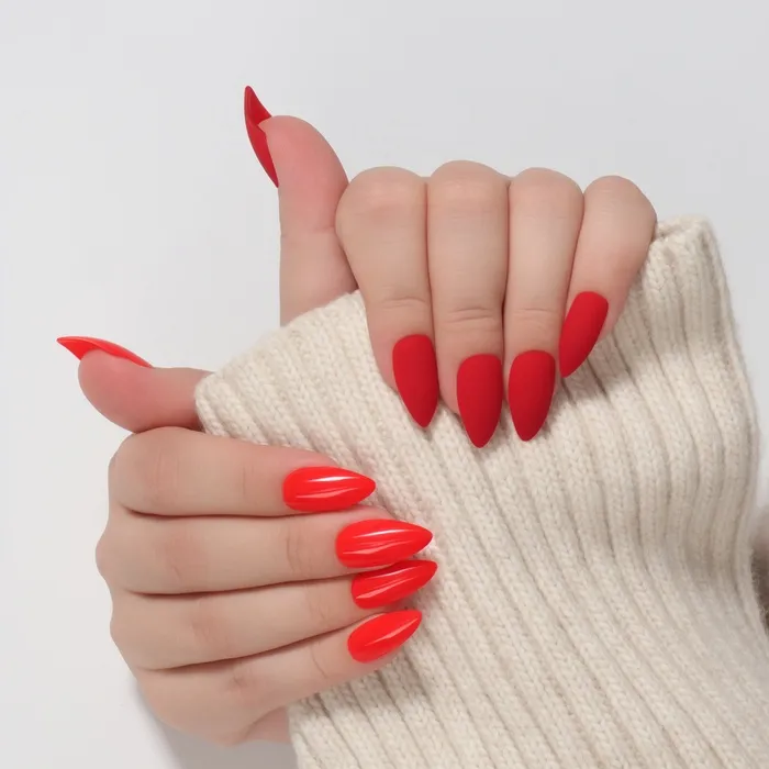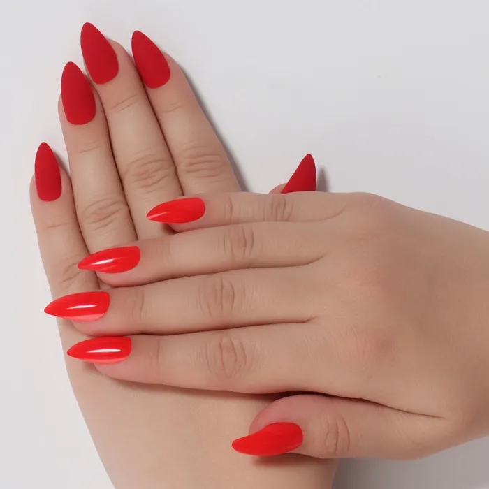 Накладные ногти, 24 шт., с клеевыми пластинами, форма миндаль, матовые/глянцевые, алые