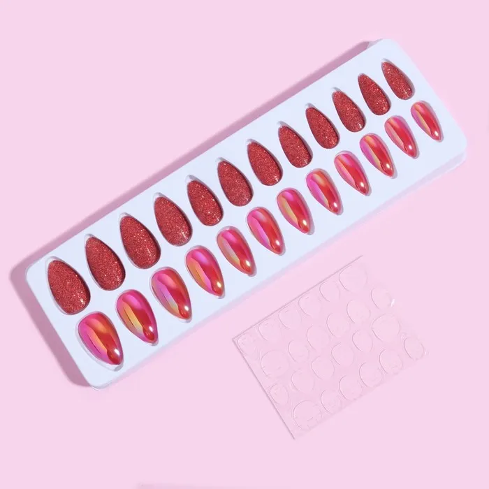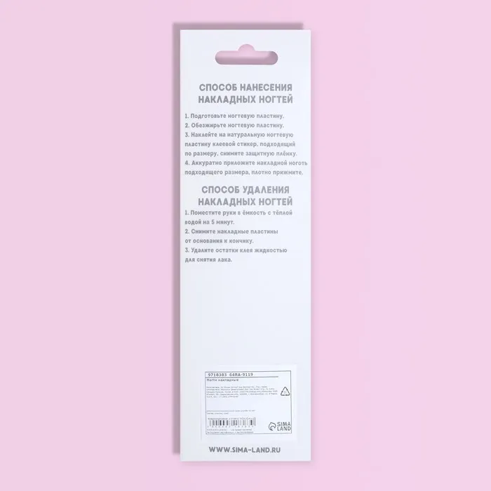 В наборе с накладными ногтями идут клеевые пластины. За счёт этого уменьшается вероятность механического травмирования природного ногтя. Клеевые пластины безопасны в применении и не вредят натуральным ногтям, в отличие от клея. Клей содержит составе высокую токсичность, что может сказаться на вашем организме.