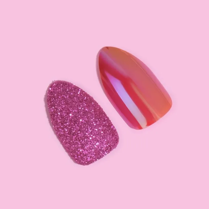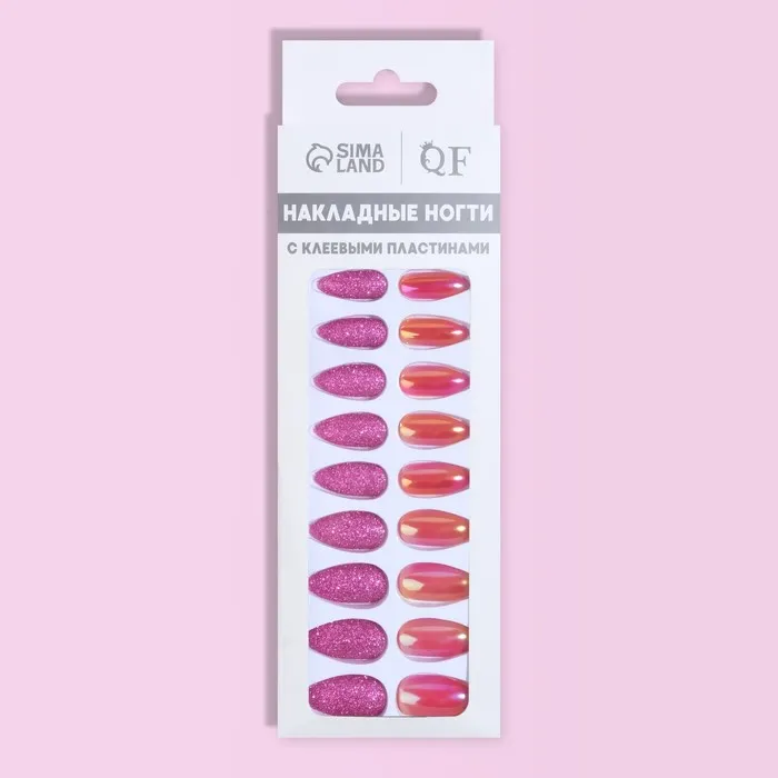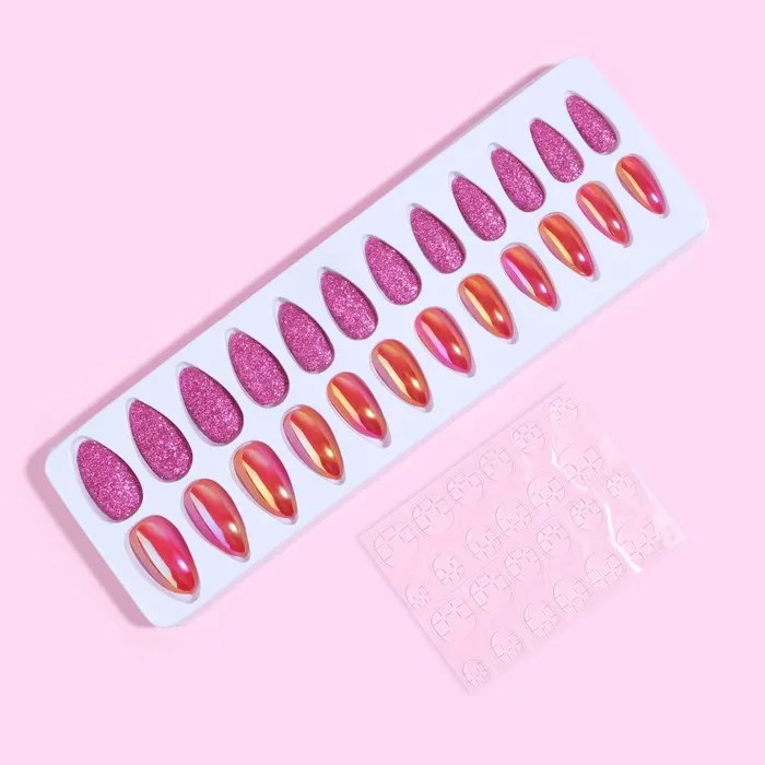 Накладные ногти, 24 шт., с клеевыми пластинами, форма миндаль, с блёстками, голографические, розовые, красные — Характеристики