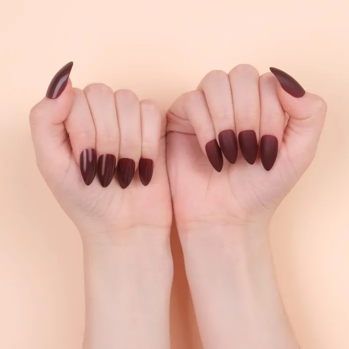 Накладные ногти, 24 шт, с клеевыми пластинами, форма миндаль, цвет бордовый